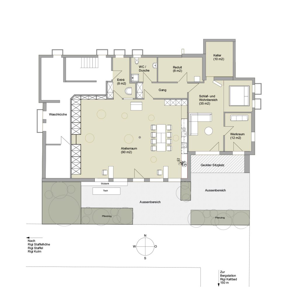 Bergwerk ist nicht gross aber auch nicht klein, dafür puristisch. Der 90m² grosse Atelierraum mit grosser Küche ist geeignet für Projektteams und Gruppen von 3 bis 15 Personen. Die Wohnbereiche bieten Schlafplätze für 4 bis max. 6 Personen.